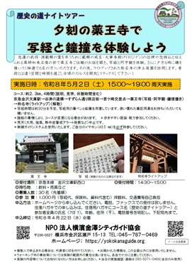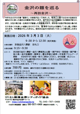 現在募集中のガイドのほか、お客様(個人・グループ・旅行会社等)のご希望コースのガイドも受付けています。ご希望の方はこちらをクリック、称名寺のガイドをご希望な方はこちらをクリックして詳細をご覧下さい。