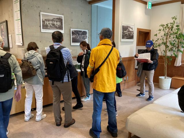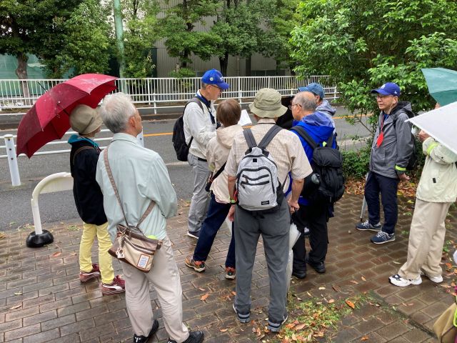 当日の朝は、予報通りの小雨となりましたが、多くの方に参加いただきました。お客様の中には「一号停留所」の保存運動で署名活動をされた「NPO法人野口英世よこはま顕彰会」のメンバーも参加いただきました。新しく海の公園に移築された「一号停留所」を柵越しに見学いたしました。公開が待ち遠しい限りです。