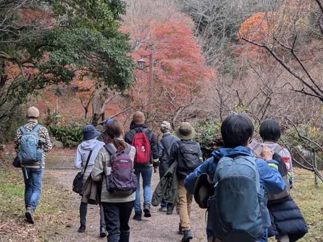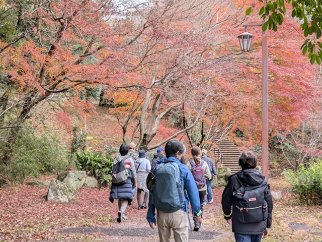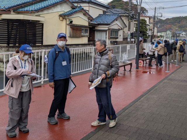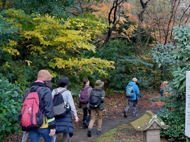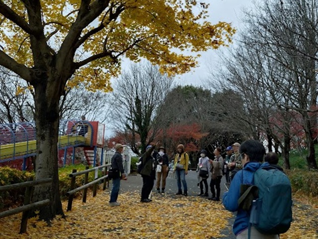 前日雨、当日も小雨模様で当日キャンセルもありましたが、新しくなった金沢文庫西口を出発。雨の影響にて能見堂跡及び関ケ谷不動尊を避けたコースを散策。前半は、紅葉の鑑賞には少し遅い感じであったが金沢自然公園の紅葉と釜利谷緑道には見事な紅葉が鑑賞できてお客様も満足された様子でした。