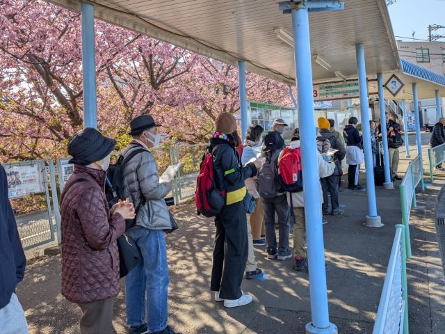 天気は快晴で風もなく穏やかな天気の中出発地の三崎口駅は河津桜が満開の中スタート。バスを3本乗り継ぎ不便なコースでしたが、遠方からの参加者や各地で運慶仏像を見学されたかたも多くバス停の待ち時間の間お互い仏像についてお話をされていました。最後の浄楽寺では改修された収蔵庫に収まる5体の運慶真作の仏像は圧巻でした。(お客様の許可をいただき正面の撮影をさせていただいております)