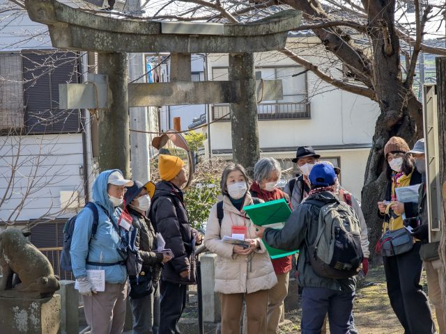 金沢文庫駅西口広場→谷津庚申塔群→六国峠ハイキングコース→能見堂跡→関ケ谷不動尊→不動池(トイレ休憩)→阿王ケ台→赤坂→宮川せせらぎ緑道→北谷→金沢自然公園北谷口→植物区・梅園→ののはな館(解散)