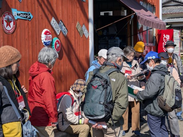 快晴のおだやかな天気のもと、多くのハイキンググループが待つ金沢文庫駅西口をスタート。